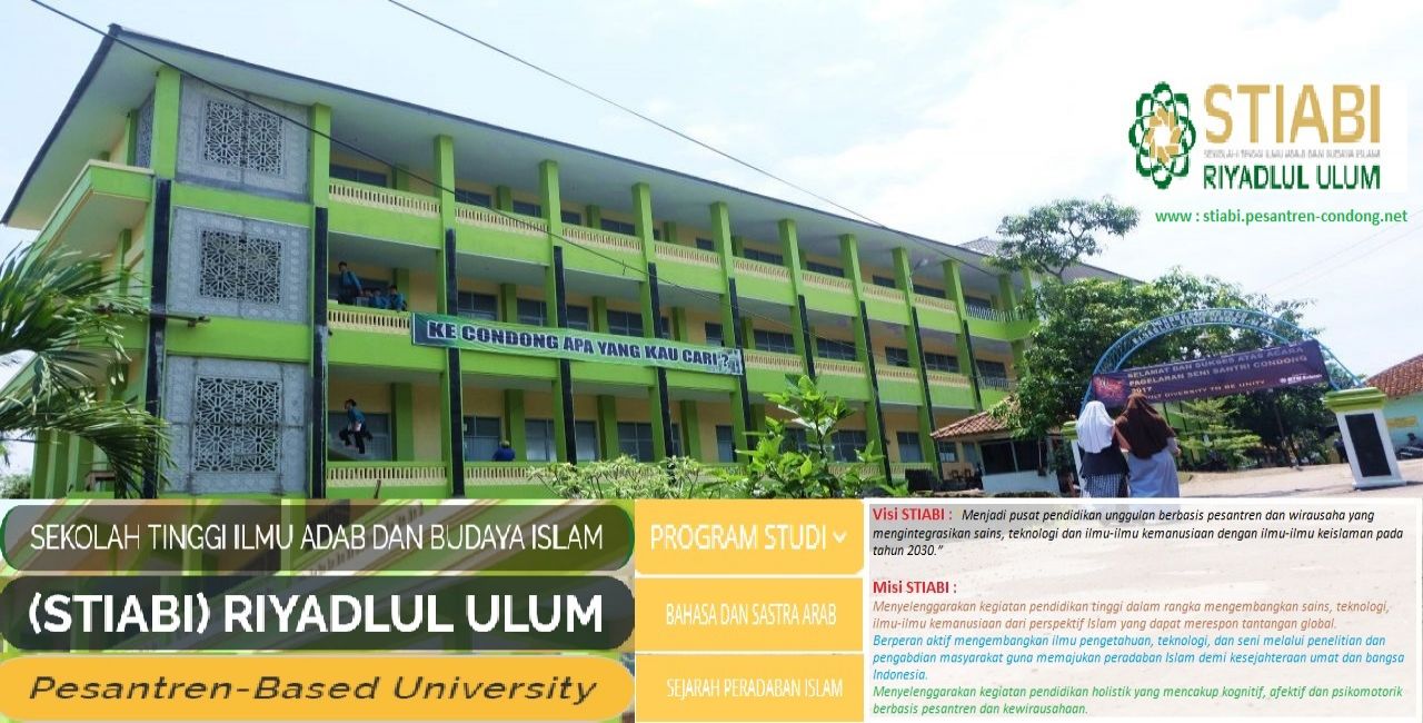 Atas berkat rahmat Allah yang maha Kuasa, Sekolah Tinggi Ilmu Adab dan Budaya Islam (STIABI) Riyadlul Ulum didirikan oleh Yayasan Tarbiyatul Islamiyah dan membuka Program Studi Bahasa dan Sastra Arab (BSA) dan Sejarah Peradaban Islam (SPI) yang dipadukan kurikulumnya dengan kurikulum pesantren atau perguruan tinggi terpadu.